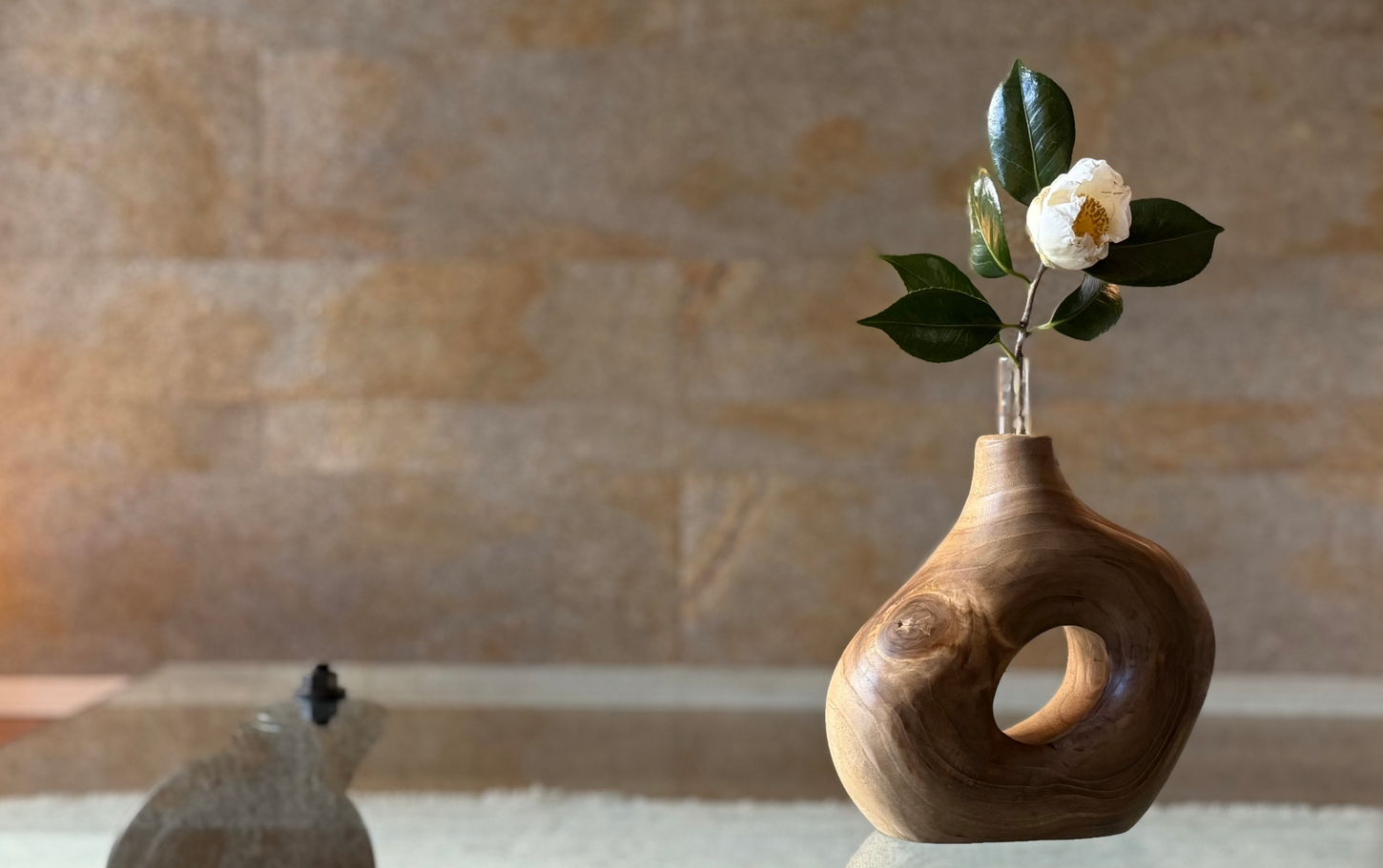 木のぬくもりをそのまま形にした、オブジェのような一輪挿し。 彫刻的で滑らかな曲線とユニークなフォルムが印象的な木製ベースは、花を生けていない時でも絵になる佇まいです。素材にはチーク材を使用。時を重ねるほどに深みを増す美しい木目が、空間に洗練された佇まいをもたらします。木材の自然な形状を活かしながら、一つひとつ丁寧にハンドメイドで仕上げられているため、同じものはふたつとありません。それぞれが持つ表情の違いもまた、この一輪挿しならではの魅力です。 <用途例>季節の花やグリーンを気軽に楽しむための、日々のインテリアに寄り添う一品です。付属のガラスシリンダーに水を入れ、切花を生けてお使いください。一輪から枝ものまで、花の姿を静かに引き立てます。 ーーー※Φ1.5㎝×H10㎝サイズのガラスシリンダーが付属しています※天然素材のため、サイズ・表情などがひとつひとつ違い、すべてが一点ものです。掲載写真と異なる場合がありますが、唯一無二の風合いとしてご理解ください。※お使いのパソコンやスマートフォンの設定により、実際の色と写真の色味とが多少異なって見えることがあります。※掲載写真に含まれる花器や植物、その他の小物類はコーディネート例となります。販売商品には含まれておりません。 ーーー サイズ:幅20cm×奥行8㎝×高さ28cmカラー:ブラウン素材:チーク材・ガラス重量:原産国:インドネシア商品番号:VS-ST-WV-BR-TW-MZ-26026付属品:ガラスシリンダー2本